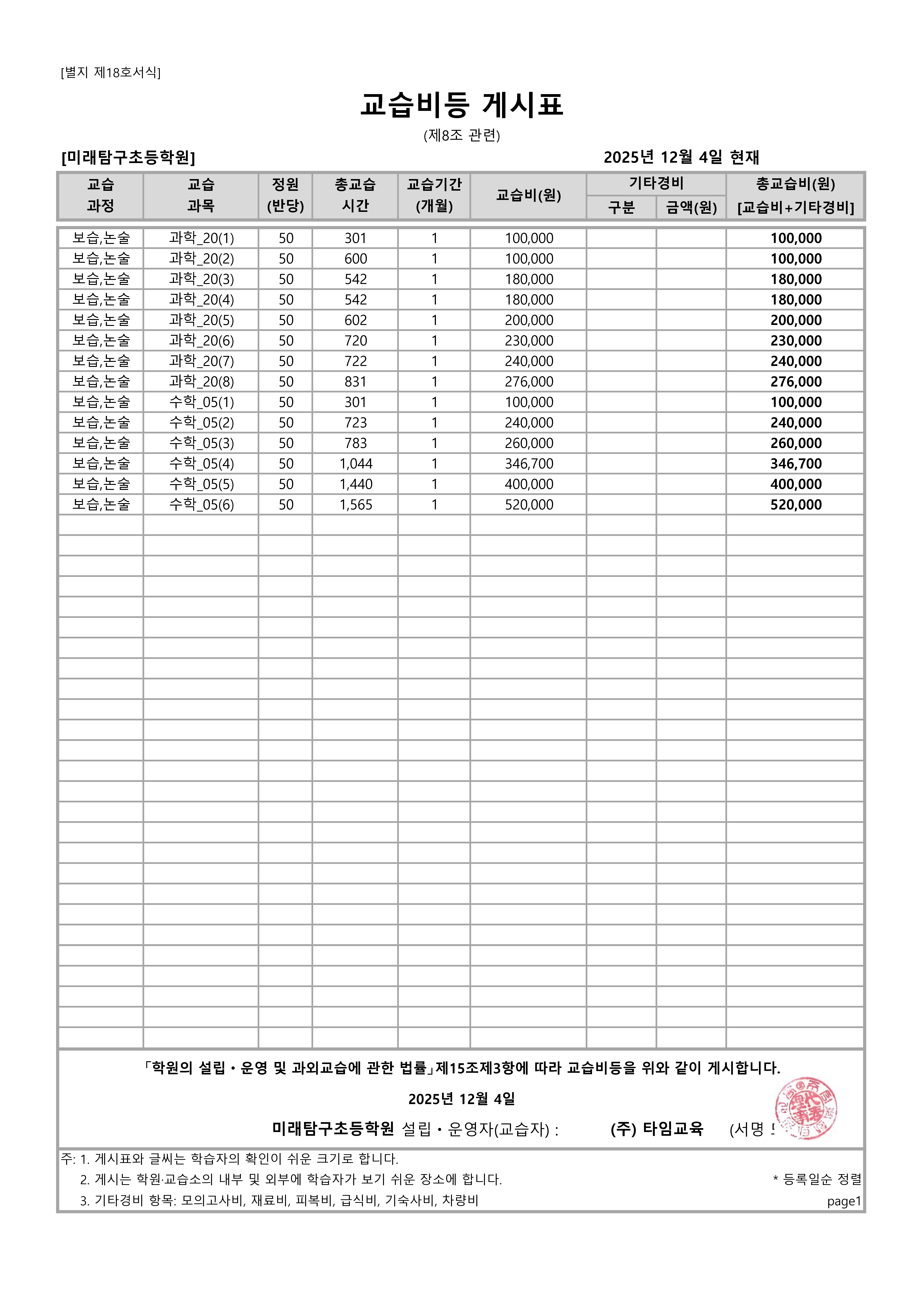 수강료안내